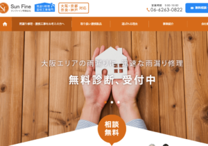 大阪市大正区での雨漏り修理にも対応。大手ゼネコンでの経験をもつ社長が開業した会社です。専門の有資格者で雨漏りに関する知識が豊富です。また雨漏り修理をした箇所から万が一再発した場合、工事時にかかった費用を全額返金するという自身。