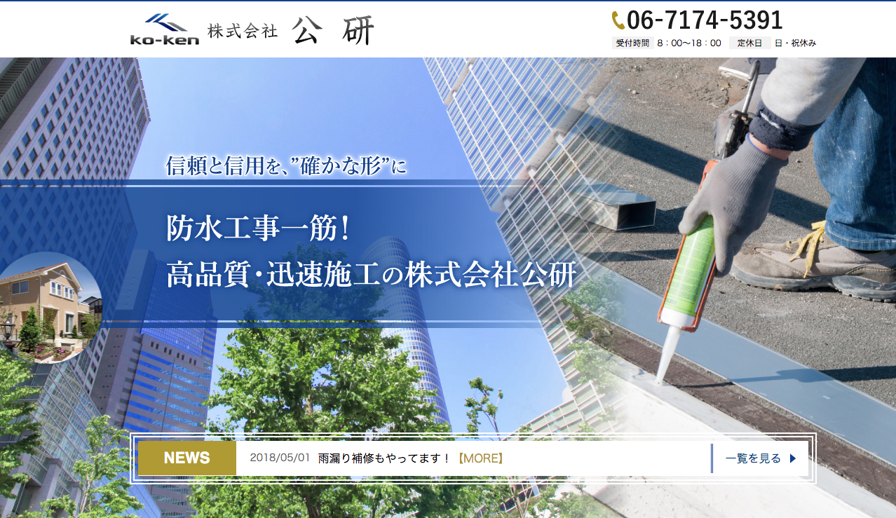 大阪府池田市での雨漏り修理にも対応。戸建て住宅からマンション・ビル・施設まで、幅広い建物に対応しています。雨漏り修理や防水工事、シーリングなど防水に関わる工事を得意としている業者です。