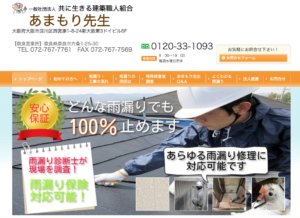 大阪府豊中市での雨漏り修理にも対応。大手ゼネコンでの経験をもつ社長が開業した会社です。専門の有資格者で雨漏りに関する知識が豊富ですまた雨漏り修理をした箇所から万が一再発した場合、工事時にかかった費用を全額返金するという自身。